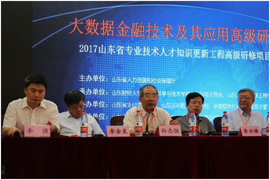据介绍,本次大数据金融技术及其应用高级研修班是山东省96个省级研修项目之一,省人社厅为深入贯彻落实习近平总书记在中央金融工作会议上的重要讲话精神,根据山东省专业技术人才知识更新工程的部署和要求,加强我省专业技术人才队伍建设,促进大数据、云计算等新一代信息技术在金融领域的应用,为金融以及相关领域信息技术专业人员所办层次最高的培训班,也是为提升专业技术人员和机构管理人员综合素质进行的一次有益尝试。